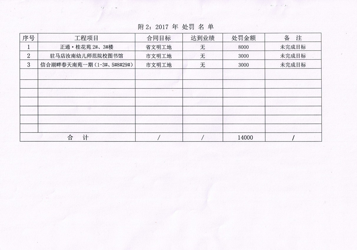 關(guān)于對2017年度工程安全管理情況獎罰的決定