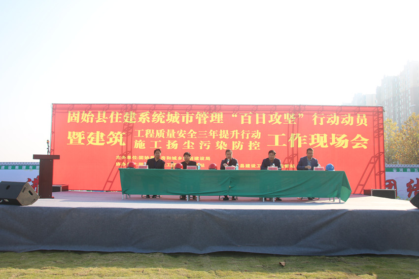 11月1日上午,固始縣住建系統(tǒng)城市管理“百日攻堅”行動動員暨建筑工程質(zhì)量安全三年提升行動施工揚塵污染防控工作現(xiàn)場會在公司承建的固始縣人民醫(yī)院項目現(xiàn)場召開。本次現(xiàn)場會由固始縣住建局局長孟凡杰主持召開,共計四百余人參加了會議,參加會議的有:固始縣住建局副局長汪明昌、公司副總經(jīng)理吳建功、河南新旭建筑工程有限公司固始分公司總經(jīng)理楊嶺、固始縣信合集團公司固始事業(yè)部總經(jīng)理黃全;固始縣住建局相關(guān)股室主要負責人、縣內(nèi)各在建項目建設(shè)單位項目負責人,監(jiān)理單位主要負責人、項目總監(jiān),公司各在建項目經(jīng)理、質(zhì)檢員、安全員、揚塵治理專管員、施工現(xiàn)場揚塵治理“三員”等。
