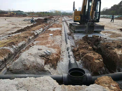 (1)停車場分層碾壓區(qū)(A區(qū)):預(yù)埋雨水、給水、強(qiáng)電、弱電管道?;靥钣晁?、給水管溝。砌筑雨水井、檢查井。