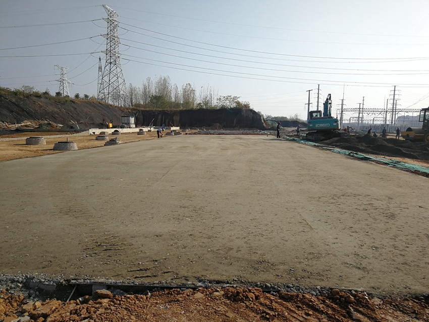 (1)南區(qū)東側(cè)兩條停車線、東側(cè)兩條道路及南側(cè)入口主路,出口主路,壓路機(jī)碾壓密實(shí)、素土夯實(shí)完成,南區(qū)東側(cè)兩條停車線路基水穩(wěn)基層全部完成。