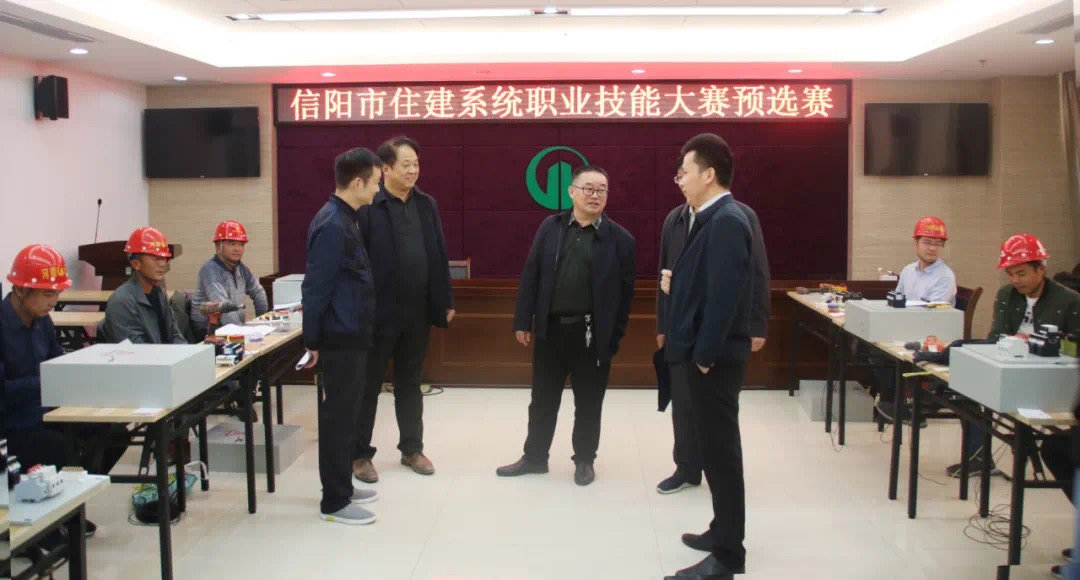 公司積極舉辦此次職業(yè)技能競(jìng)賽,成為本地同行業(yè)中首先響應(yīng)相關(guān)文件要求,開(kāi)展此類活動(dòng)的企業(yè),受到上級(jí)主管部門(mén)的關(guān)注和肯定。12日下午,信陽(yáng)市住建局主管副局長(zhǎng)張奔、人事科科長(zhǎng)晏慶軍、建管科科長(zhǎng)劉彬等領(lǐng)導(dǎo)在公司黨委書(shū)記、董事長(zhǎng)吳萬(wàn)仁、副總經(jīng)理吳建功陪同下,親臨競(jìng)賽現(xiàn)場(chǎng),看望比賽中的選手,為他們加油、助力。