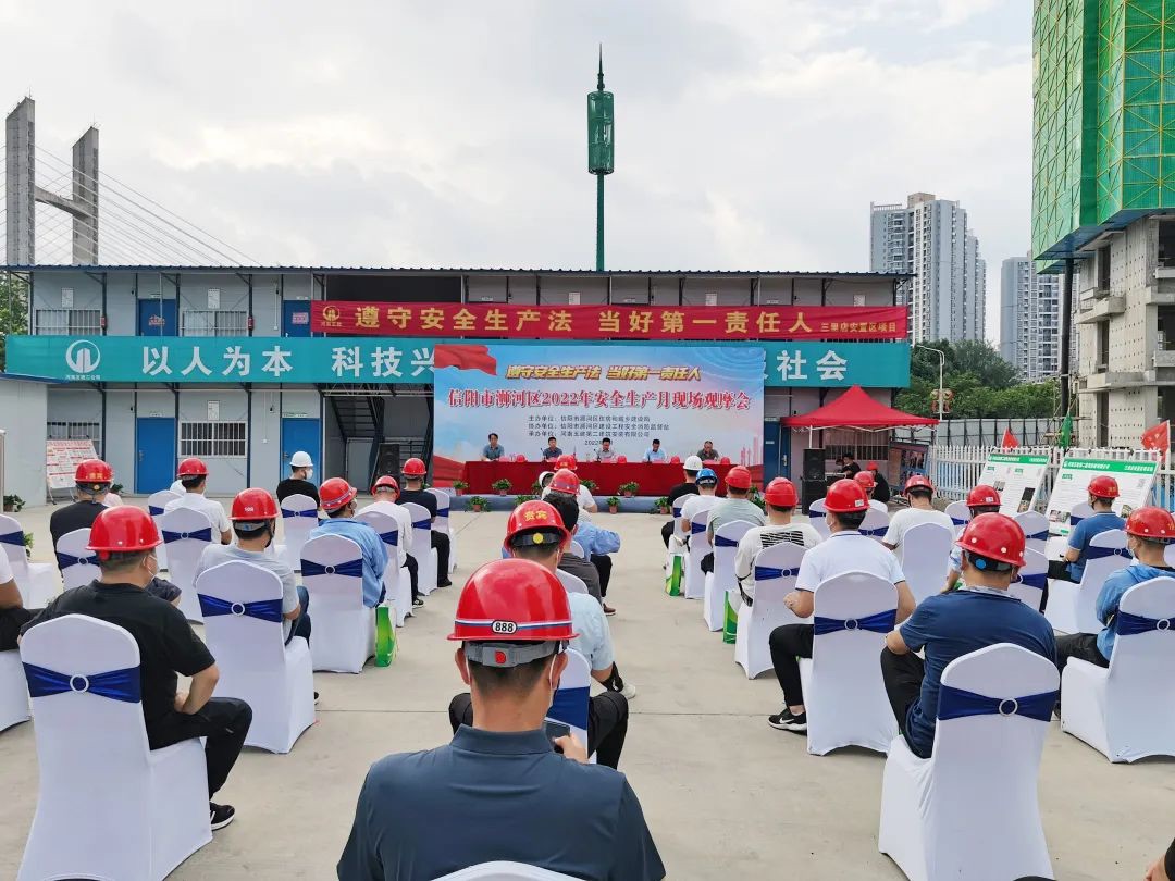 6月22日,信陽市浉河區(qū)2022年“安全生產(chǎn)月”現(xiàn)場觀摩會在公司第七項目部承建的信陽市浉河區(qū)城市有機更新安置區(qū)三里店片區(qū)建設(shè)項目順利舉行,浉河區(qū)住建局黨組成員、副局長熊國利、監(jiān)管股股長秦宏偉、安監(jiān)站黨組書記馬俊、站長朱偉以及轄區(qū)內(nèi)建筑施工企業(yè)安全負責(zé)人、在建項目經(jīng)理、項目安全負責(zé)人參加會議。公司副總經(jīng)理吳建功出席活動并講話。