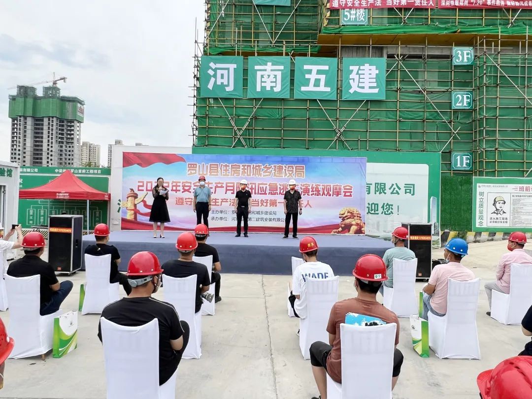 6月26日,羅山縣住建系統(tǒng)2022年“安全生產(chǎn)月防”汛應(yīng)急逃生演練觀摩會在公司第三項目部承建的羅山中梁首府項目順利舉辦。羅山縣住房和城鄉(xiāng)建設(shè)局副局長楊長進、建筑工程安全指導(dǎo)站站長陳軍、公司副總經(jīng)理吳建功以及羅山縣建筑施工企業(yè)安全負責(zé)人、在建項目經(jīng)理、項目安全負責(zé)人參加活動。