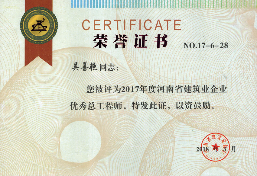 公司榮獲 2017年度“河南省建筑業(yè)前二十強(qiáng)企業(yè)”、“河南省建筑業(yè)先進(jìn)企業(yè)”等多項(xiàng)榮譽(yù)