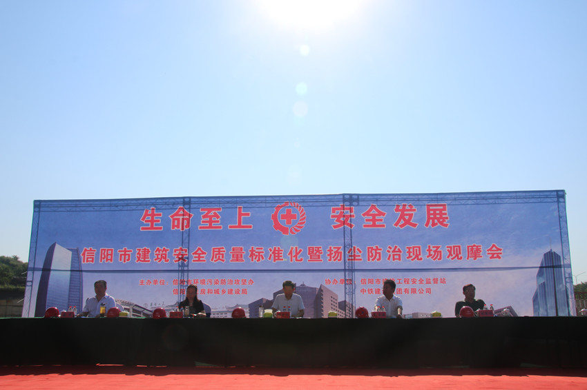 7月20日上午,信陽市成功舉辦了2018年信陽市建筑安全質(zhì)量標(biāo)準(zhǔn)化暨揚(yáng)塵防治現(xiàn)場觀摩會。