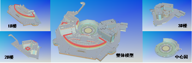 采用GCL軟件創(chuàng)建,分為:1#樓土建模型、2#樓土建模型、3#樓土建模型、中心園土建模型(圖2)。機電模型采用Revit MEP軟件創(chuàng)建,按照分層、分專業(yè)建模的方式進行。